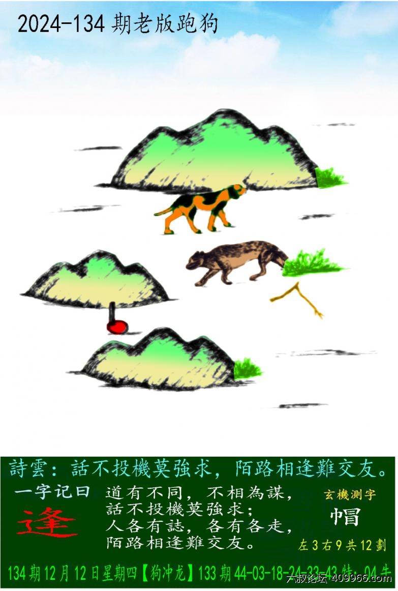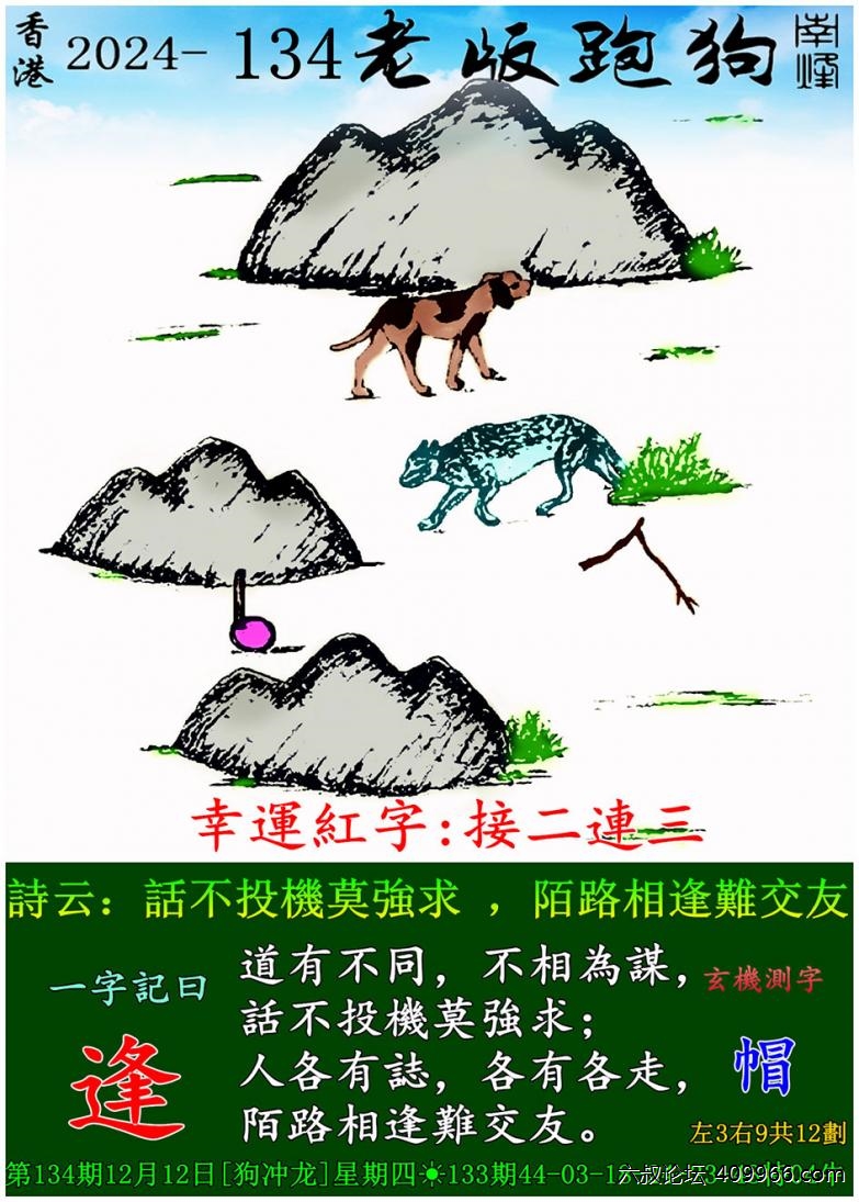 134期老版跑狗一字記之曰:【逢】 詩雲:話不投機莫強求,陌路相逢難交友。