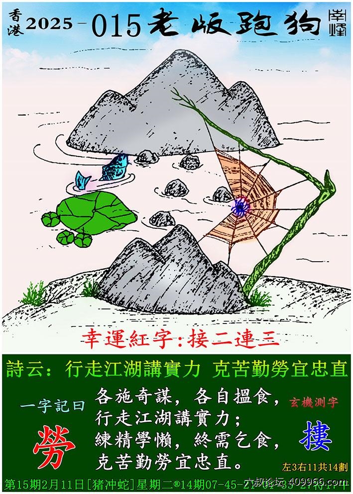 015期老版跑狗一字記之曰:【勞】 詩雲:行走江湖講實力,克苦勤勞宜忠直。