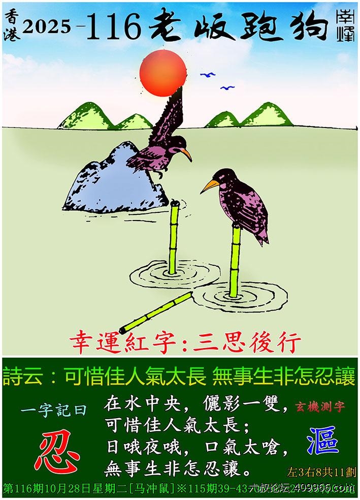 116期老版跑狗一字記之曰:【忍】 詩雲:可惜佳人氣太長,無事生非怎忍讓。