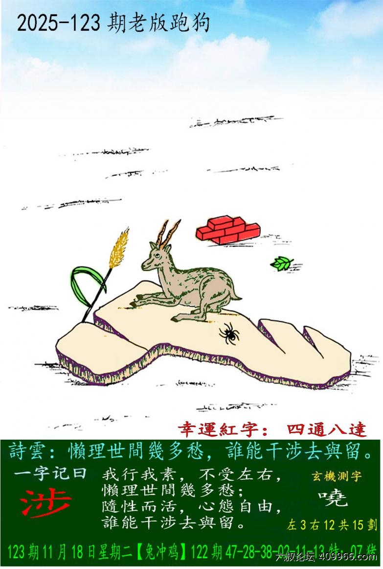 123期老版跑狗一字記之曰:【涉】 詩雲:懶理世間幾多愁,誰能干涉去與留。