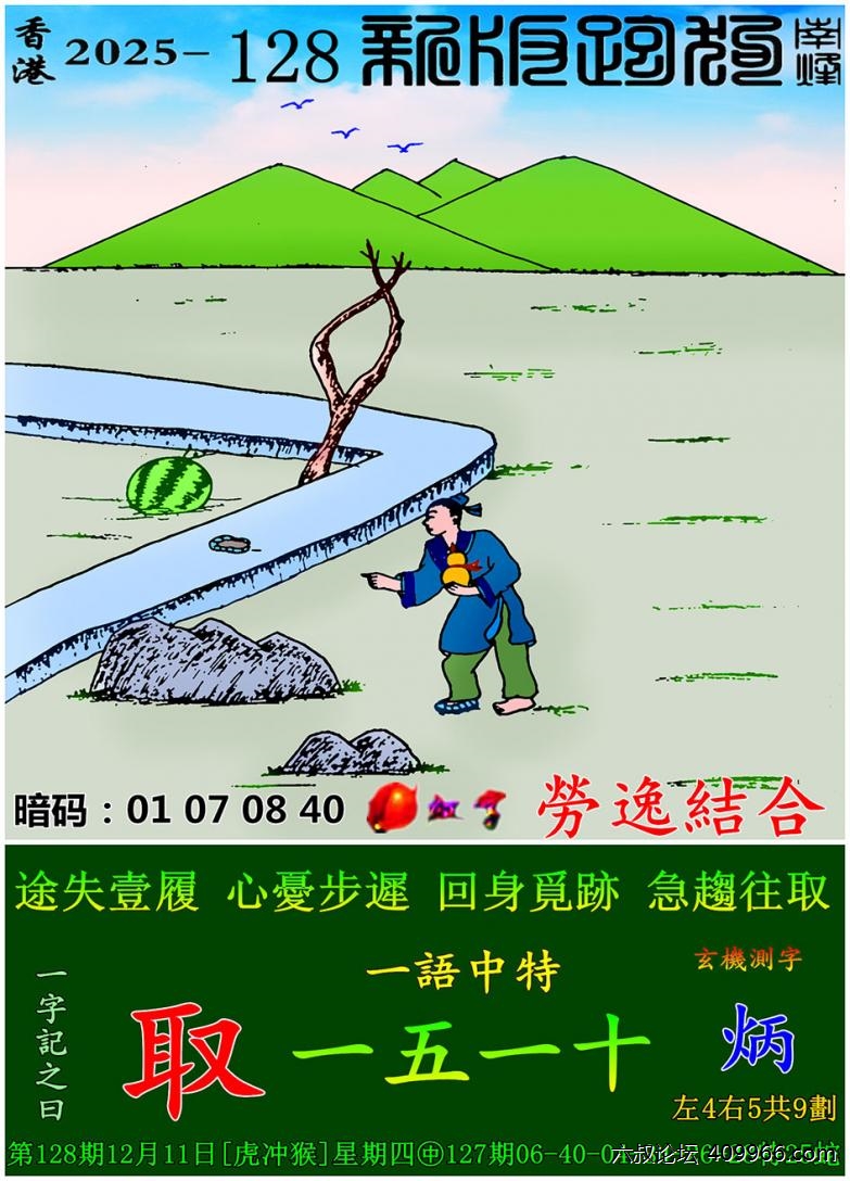128期新版跑狗一字記之曰:【取】 玄機測字:《炳》 一語中特:一五一十