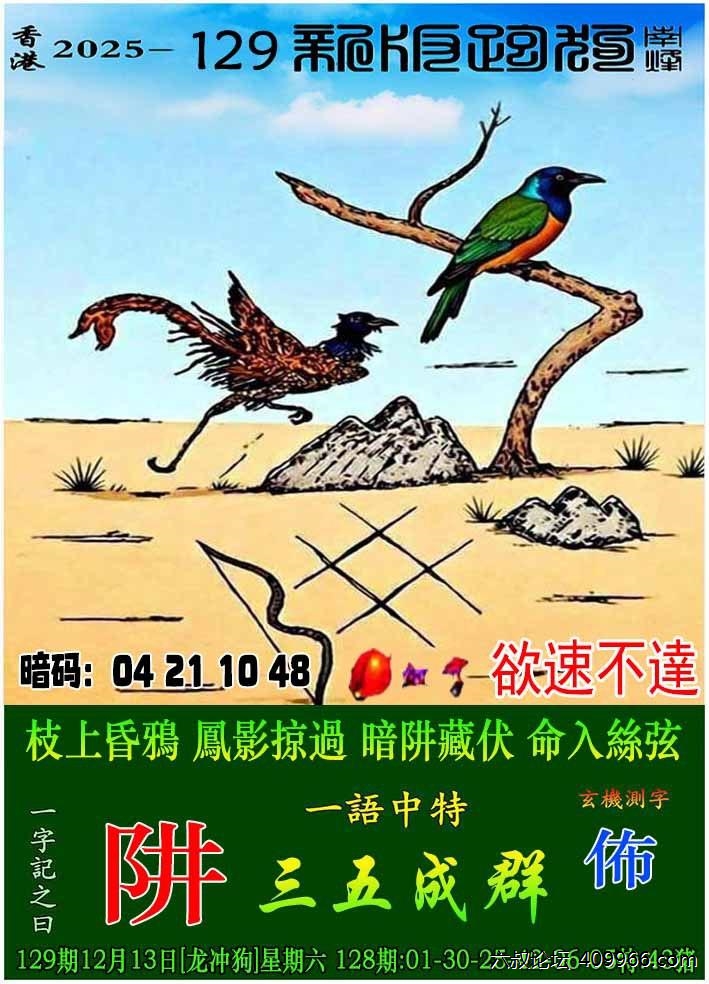 129期新版跑狗一字記之曰:【阱】 玄機測字:《佈》 一語中特:三五成群