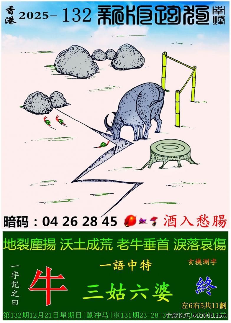 132期新版跑狗一字記之曰:【牛】 玄機測字:《終》 一語中特:三姑六婆