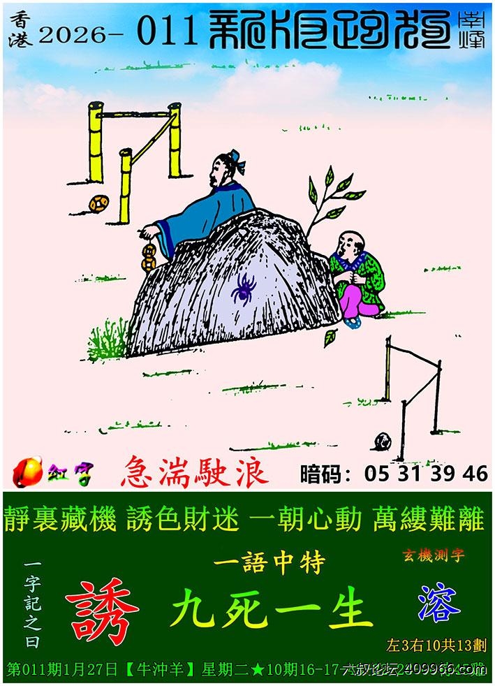 011期新版跑狗一字記之曰:【誘】玄機測字:《溶》 一語中特:九死一生