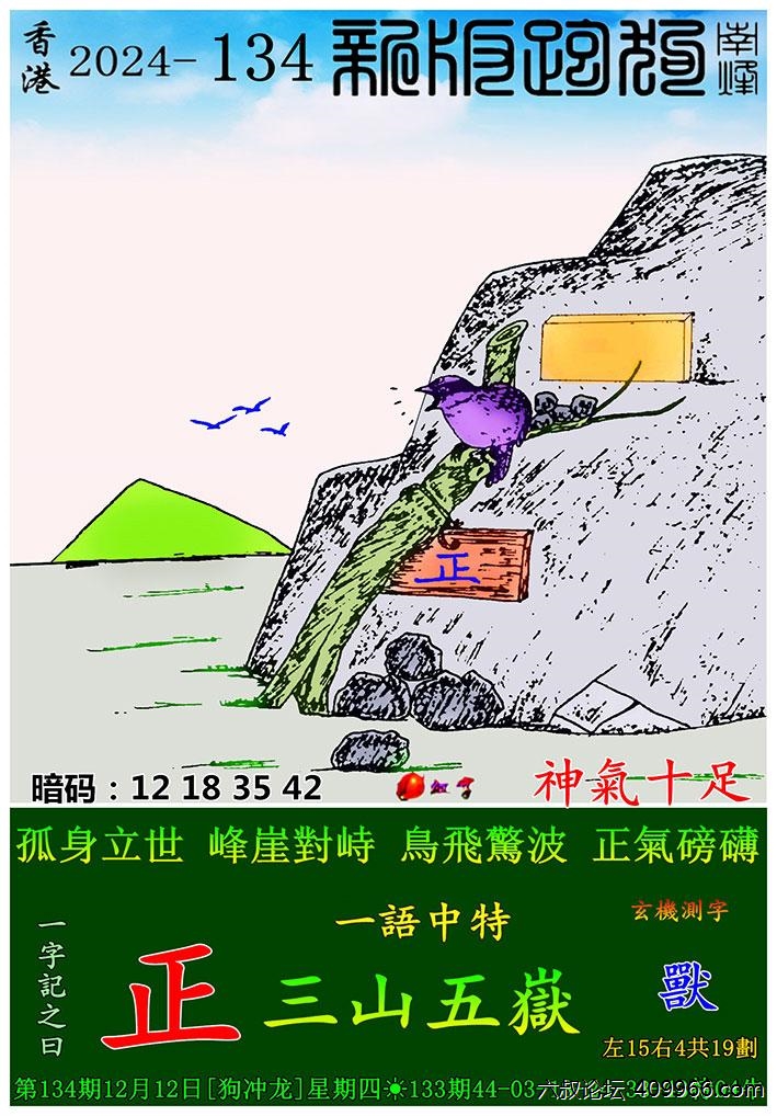 134期新版跑狗一字記之曰:【正】 玄機測字:《獸》 一語中特: 三山五嶽
