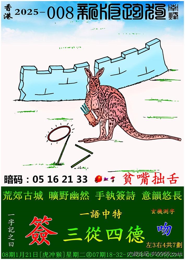 009期新版跑狗一字記之曰:【跳】 玄機測字:《勁》 一語中特:三五成群