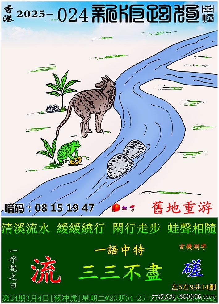 024期新版跑狗一字記之曰:【流】 玄機測字:《磋》 一語中特:三三不盡