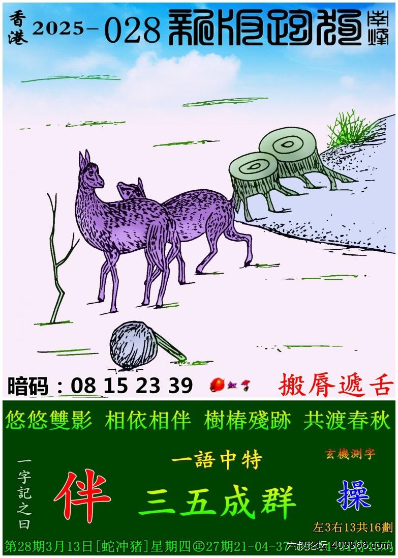 028期新版跑狗一字記之曰:【伴】 玄機測字:《操》 一語中特:三五成群