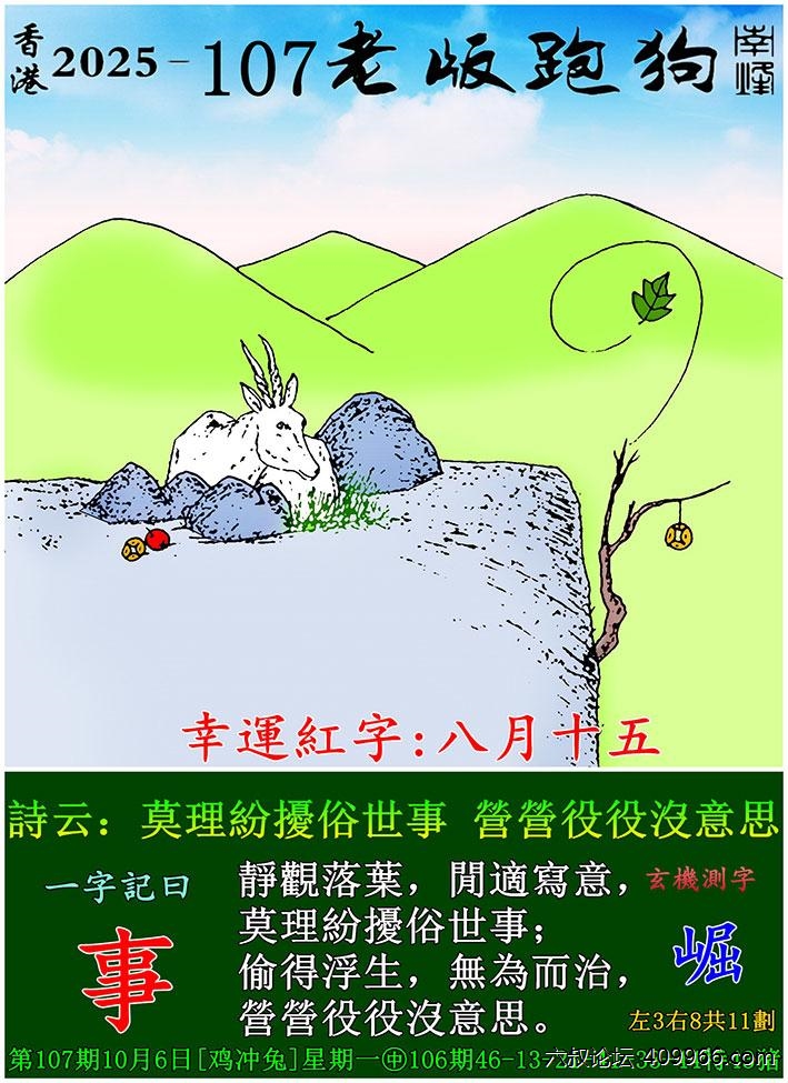 107期老版跑狗一字記之曰:【事】 玄機測字:《崛》